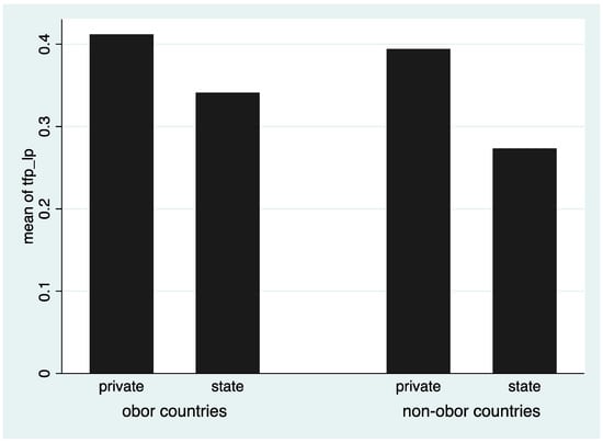 Table 6 shows the linkages found between the financial statuses of the invested firms and the investment volume diverged from classical investment theories. Listed larger firms with higher leverage and lower productivity (Tfp_lp) and profitability were found to invest more along the “Belt and Road”. State-owned firms were more actively investing in large projects in OBOR countries, which may be because it is easier for large state-owned firms to get financing from the policy-related banks; however, this does not mean that they are more productive or effective than private firms (Figure 3). It appears that the Chinese firms investing in response to the BRI were large firms with lower efficiency, which was not in line with the research that argued that firms should invest when they have high productivity and efficiency [37,38,57,58]. This finding also provides some proof for the recent observation that Chinese OFDI firms generally has poor financial performance [42,43,44]. Unfortunately, low efficient firms that conduct ODFI may be unable to generate synergies [40,41].