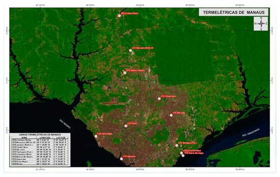 The image of Figure 1 shows the geographic panorama of the location of the UTEs installed in the city of Manaus.