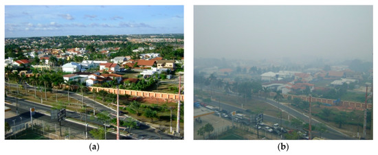 Figure 2 shows a photochemical smog in the city of Manaus, the visible differences of this environment in the comparison of the images: (a) photographic record of an avenue in humid season of the year; and, (b) photographic record of the same avenue in dry period of the year. The dry period occurs between the months of July to December; the humid period occurs in the months January to June.