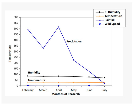 In this study the variations of meteorological parameters were recorded and considered in the analysis of the measurements. Figure 3 shows the data considered during the study period.