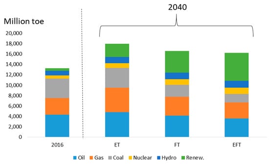 2] divides the energy transformation speed into three categories: evolving transformation (ET), faster transformation (FT), and even faster transition (EFT). This outlook also predicts the proportion of primary energy consumption in energy sources in the year 2040 under different energy transformation speeds. As shown in