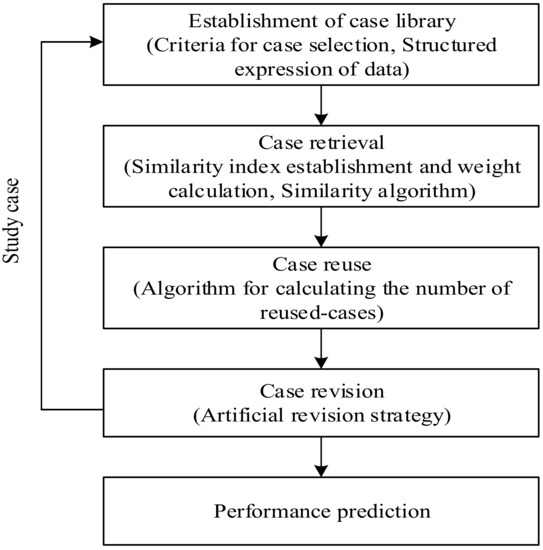 As shown in Figure 1, the framework consists of five basic steps: (1) the establishment of a case library; (2) case retrieval; (3) case reuse; (4) case revision; and (5) performance prediction. Compared with the traditional CBR process, the “performance prediction” procedure is added. That is to say, using this method to design the transaction mode can predict the performance of the project. Compared with the traditional method based only on influence factors, this method is more direct and performance-oriented and puts more emphasis on the final impact of the project results. In this way, this method is conducive to the scientific decision-making of a transaction mode to improve project performance.
