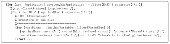 Since different sort of inferences were achieved this may lead to think that EMSOnto is flexible to implement any kind of inference. However, this strictly depends on the expressivity provided by the ontology () and also the rules. Although is well defined, the expressivity for rules is determined by rule languages. In this work, SWRL and SPARQL were enough to address the control engineer’s requirements. Nevertheless, other requirements may need to use the Rule Interchange Format (RIF), which provides the means to insert primary logic programming languages [37], or even to extend ontologies with probabilistic inference and temporal logic [49].