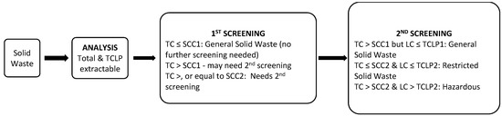 Assessment of sludge hazardous status based on both TCLP and SCC thresholds (2nd Screening stage) [35].
