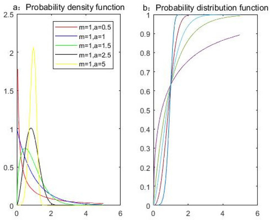 Among them, the probability density function and probability distribution function of equipment failure obeying the Weibull distribution are shown in Figure 4. According to the basic properties of the Weibull function, the frequency of equipment in a fixed period can be deduced.