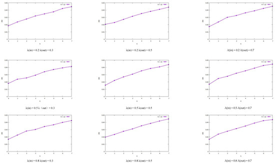 | λ(in) = 0.5 λ(out) = 0.3 | G | 0.0295 | 0.046 | 0.0567 | 0.0597 | 0.0815 | 0.0993 | 0.092 | 0.1039 |