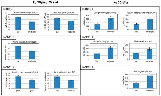 26] found that low-emitting farms had higher animal and land productivities than high-emitting farms in Canadian cow-calf systems. In French suckler-beef production farms, animal productivity was the main factor influencing GHG emissions [