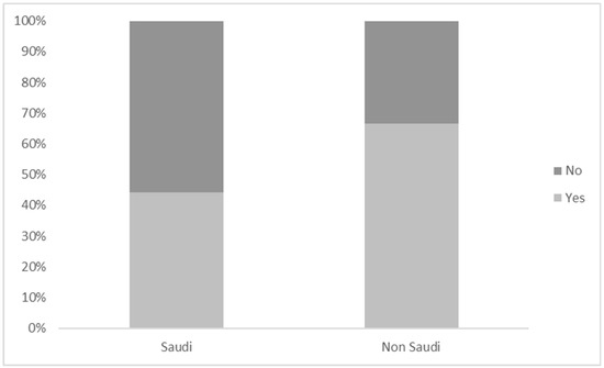 As part of the study, it was important to investigate the perception of both Saudi citizens and non-Saudi residents on the subject. The majority of participants were Saudi citizens (91%). Table 1 presents the nationality profile of the survey sample.