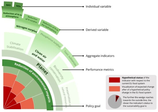 - Performance metric: Combines a number of aggregated indicators and evaluates them against performance of EU goals (e.g., climate stabilization, balanced diet for EU citizens).