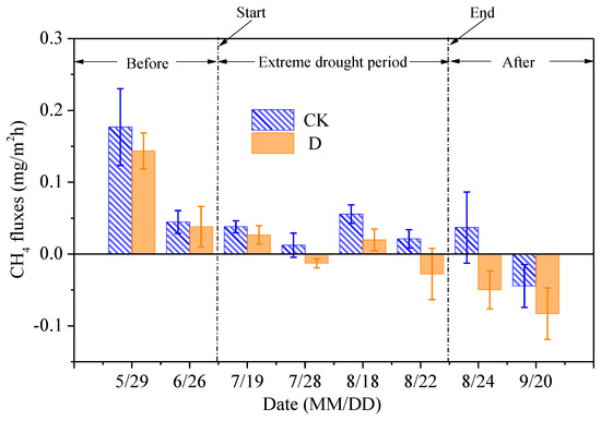 3.4. The Effects of Extreme Drought on CH4 Fluxes