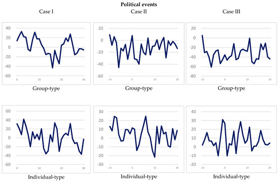 The events considered in this study include both political events and disaster-related incidents. The estimation period for political events ranges from 110 days prior to the date of the event, to 11 days before it ( to ), and the event period ranges from 10 days before the political event to 20 days after it ( to ). The estimation period for disaster-related incidents ranges from 100 days prior to the event to one day before it ( to ), and the event period ranges from the date of the event to 30 days after it ( to ). Regardless of whether the events are political or disaster-related, the estimation period is always 100 days, and the event period is 31 days, so that the period under observation covers a total of 131 days.