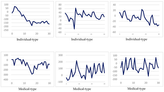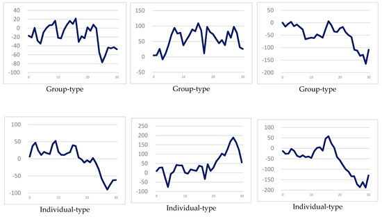 By using the OLS, GARCH(1,1), GJR(1,1), and EGARCH(1,1) regression equations mentioned above, we can estimate the regression coefficients and , respectively, and and can be brought into the events period data, in order to forecast the rate of change in the number of Chinese tourists visiting Taiwan, as shown in Equation (16) (see McAleer and Hafner [31]):