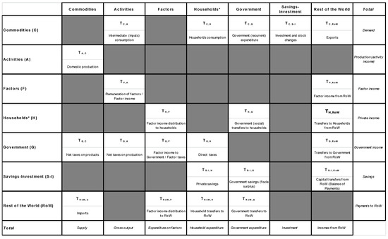 11], constructed a series of SAMs for each of the EU MS with detailed accounts for 30 agricultural activities and 11 food activities, benchmarked to the year 2000. This database was employed to conduct a structural multiplier analysis of Spain’s agricultural sector [