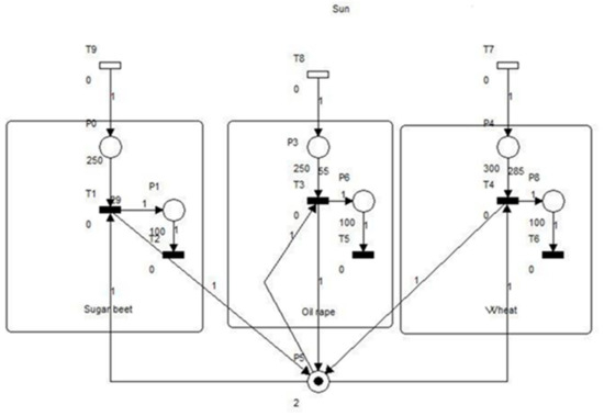 19]. In this article, Petri nets are applied to agricultural production processes. We use one of the basic types, that is, the stochastic Petri net.
