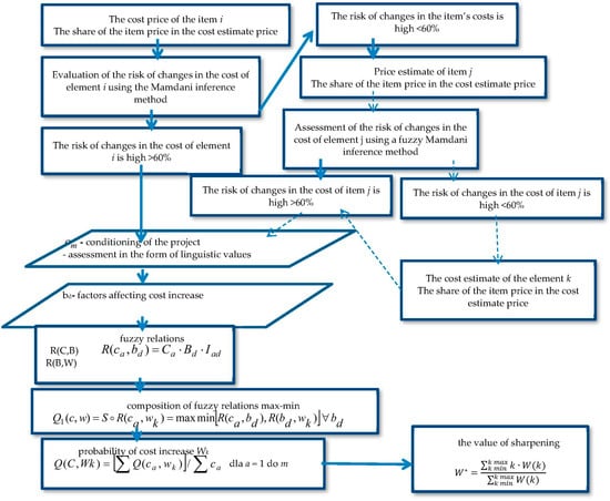 The assumption of the model is to determine the increase in costs for those elements for which the risk of cost changes is high. The first stage, therefore, involves the selection of elements subject to further assessment. The model proposes the Mamdani fuzzy inference method. The following rules are used: