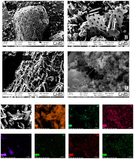 - Pituello, C.; Francioso, O.; Simonetti, G.; Pisi, A.; Torreggiani, A.; Berti, A.; Morari, F. Characterization of chemical–physical, structural and morphological properties of biochars from biowastes produced at different temperatures. J. Soils Sediments 2015, 15, 792–804. [Google Scholar] [CrossRef]