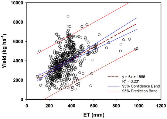 Relationship between dryland wheat yield in northern Chinese areas and ET. * indicates significance at p < 0.05.