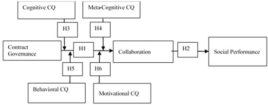 One possible explanation is that meta-cognitive cultural intelligence and motivational cultural intelligence are important social relations mechanisms that exert influence on contract governance. A company with high involvement gains some benefits needed for improving collaboration. The logic of cultural intelligence (CQ) in contract governance is particularly important in some emerging economies, such as Pakistan, where the implementation and the rule of law are weak and regulatory and political uncertainty is high. The current authors suggest that when the institutional environment is weak, provision for dispute resolution informal contact with cultural intelligence become the assurance for the execution of contracts. However, if CQ is absent, the situation will deteriorate, reducing the cooperation and, thus, hurts the performance outcomes. Acknowledging cultural intelligence is a double-edged sword and more attention should be directed to such a governance mechanism that can turn cultural differences in fostering collaboration. The results demonstrate that if firms decided to pursue social sustainability, it is best to consider cultural intelligence for the development and implementation of collaboration.