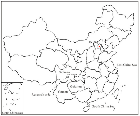 The position of the study area is located in the southeastern foot of Mount Emei, Sichuan Province, China.