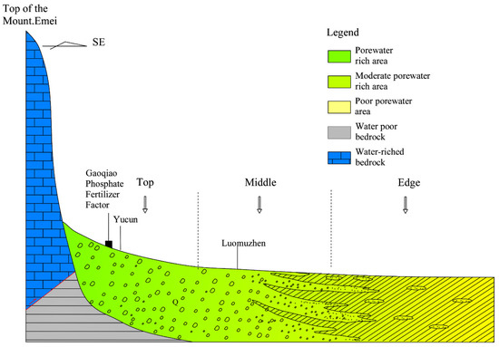 The hydrogeological profile figure of the composition features of the Gaoqiao diluvial fan.