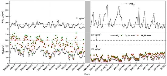 3.1. PM2.5 and O3 Concentrations