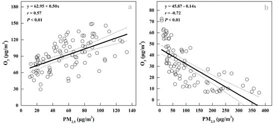 3.3. Spatial Variations in PM2.5 and O3 Concentrations