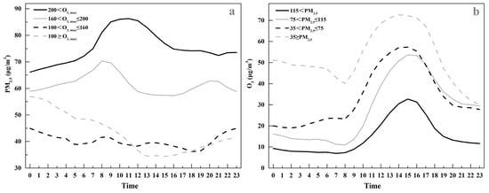 3.2. Diurnal Variations in PM2.5 and O3 Concentrations