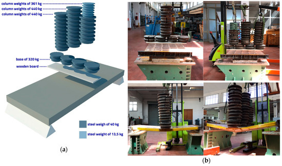 The mechanical scheme adopted for testing the panel and verify its behavior in order to find the breaking strength is that of a beam supported at both ends with a concentrated load considered acting in its centerline. This scheme has been adopted to overcome the limits due to the laboratory equipment. During the tests, the pre-stressed panels have been positioned and gradually loaded through round shaped steel weights positioned on a wooden board in order to avoid their contact with glass blocks (Figure 8). The panel has not been equipped with micrometer dial gauges for avoiding their eventual damage following the panel breaking that happened under a load equal to 1561 kg.