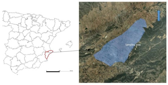 Location of the sampling area, northwest of the province of Alicante (eastern Spain).