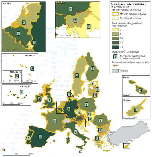 Green Infrastructures initiatives in Europe, EU 28 (EEA, 2017).