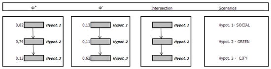 The results of the multi-criteria analysis, i.e., the evaluation of the three intervention hypotheses, highlighted that Hypothesis Social is the predominant hypothesis, followed at short distance by Hypothesis Green, while Hypothesis City gained a marginal meaning.