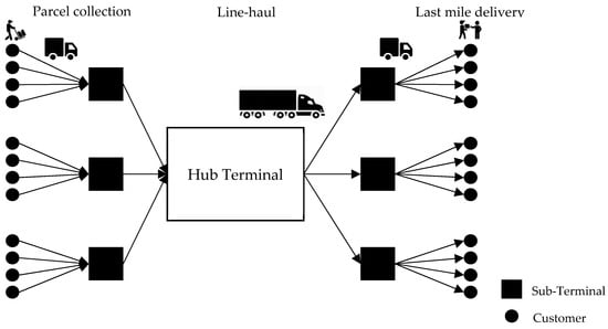 In the era of time-based competition, today’s customers begin to demand responsiveness as an integral part of a service. As consumers increasingly turn to e-commerce for all their shopping needs, a quick response service becomes a critical mission for logistic companies and retail partners across the world. Express delivery companies have made several types of efforts for speedy fulfilment, most of which are focused on a delivery service network, terminal productivity and vehicle routing and scheduling, etc. Recently, last mile delivery as the final step of the delivery process, has emerged as a hot issue in fast delivery. As described earlier by Business Insider, the share of last mile is 53%, the highest of the elements of delivery cost []. In addition, last mile can be a key to customer satisfaction since it becomes the contact point at which the parcel finally arrives at the buyer’s door.