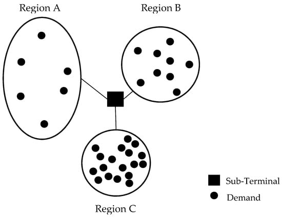 While many analytical studies related to express delivery services have been undertaken, the literature dealing with the market density and price decision in the last mile delivery services is scarce. Boyer et al. evaluated the effects of customer density and delivery window patterns in the last mile delivery process []. They performed a simulation where customer density and delivery window length were considered as variables and analyzed the effect on the last mile route efficiency. Gevaers et al. developed a last mile typology and instrument to simulate the total last mile costs. The transportation cost was derived through considering the transportation time and distance []. Kim et al. analyzed the impact of increasing demand on the parcel distribution network structure in terms of minimizing transportation and sortation costs []. Alibeyg et al. developed the net profit model that maximizes profit due to the routing commodities, which mainly focused on network design to maximize the net profit []. Zhou et al. suggested a location-routing problem with simultaneous home delivery and customer pickup []. Hu et al. proposed a vehicle routing problem with hard time windows under demand and travel time uncertainty []. The object of the model is to minimize the number of vehicle routes and total travel distance. Xuefeng et al. suggested a multi-objective location-routing problem with simultaneous pick-up and delivery []. Zhou et al. proposed a bi-level multi-sized terminal location-routing problem with simultaneous home delivery and customer pickup []. Regarding market density or demand for delivery services, Felisberto et al. introduced recipient pricing in the postal sector and tested with Swiss post data by considering the area and the amount of congestion []. Cebecauer et al. used Open Street Map data to model the demand points which approximate the geographical location of customers, and the road network, which is used to access or distribute services. They considered all inhabitants as customers, using population grids, and compared two different demand models by estimating the optimal structure of a public service system due to the differences between population grids [].