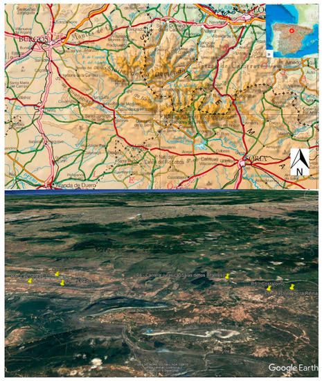 The itinerary takes place in the southeast of the province of Burgos (Castilla y León, Spain) (Figure 1) with the idea that potential participants can have the opportunity to discover the geological heritage of the place that will serve as a base for other heritage: biological, ecological and cultural.