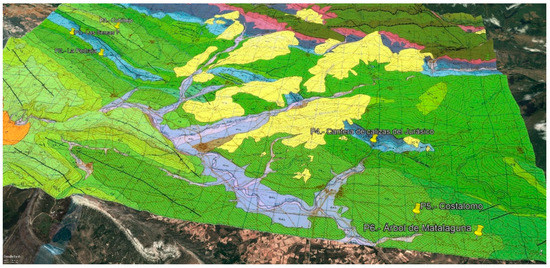- Martínez-Graña, A.M.; Bajo, I.; González-Delgado, J.A.; Cárdenas-Carretero, J.; Abad, M.; Legoinha, P. Virtual geo-resources applied to the palaeontological heritage in Sevilla (Guadalquivir Neogene basin, Spain). Geoheritage 2018, 10, 473–482. [Google Scholar] [CrossRef]