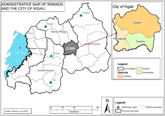 - GoR. Kigali City Development Plan 2013–2018. Government of Rwanda (GoR) Kigali City. Kigali Rwanda. 2013. Available online: www.kigalicity.gov.rw (accessed on 5 December 2018).
