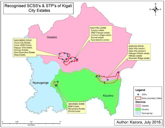 No sewerage system installed in most densely populated urban areas of Rwanda including Kigali city. However, there are few developed sewerage systems installed by estate developers (Cluster of houses) for small communities of high-income household levels in Kigali city. In addition, there are also some other SCSSs developed by business owners in some public areas like hospitals, hotels, and government institutions [8,18].