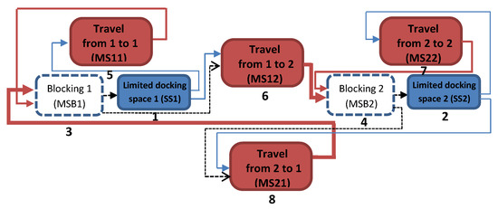Figure 2 shows the explicit model of two interconnected bike stations 1 and 2. This figure expands the model of George and Xia [31] by introducing the blocking mechanism.