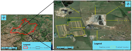 The study area is in the city of Hulun Buir (115°31′E–126°04′E, 47°05′N–53°20′N), located in the northern Inner Mongolia Autonomous Region of China (Figure 1). The study area belongs to the continental monsoon climate region in the northern temperate zone, with long cold winters and short hot summers. The annual average temperature is −1 °C, the annual average precipitation is 500 mm. Most precipitation occurs in July and August, and the annual average number of sunshine hours is 2735. The region covers a wide range of grass types, including forest steppe, meadow steppe, and sandy steppe. This region is dominated by meadow steppe and its vegetation cover includes perennial bunch grasses that are formed in semihumid and semi-arid climatic conditions, including Stipa baicalensis, Leymus chinensis, Stipa grandis, Cleistogenes squarrosa, etc. The primary soil type in this region is chernozem, while others types include meadow chestnut soil, dark chestnut soil and chestnut soil. Natural resources are rich in the region, with 58 billion tons of proved coal reserves. Since the 1980s, overgrazing, wasteland reclamation, coal mining, and other industrial and agricultural developments have caused vegetation degradation, land desertification, pollution and salinization.