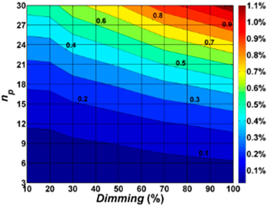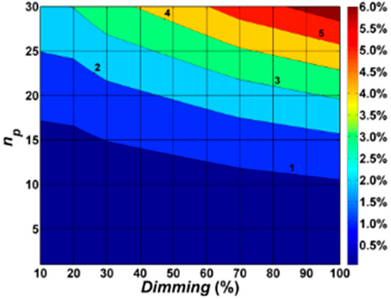 With this assumption, total losses in the lighting system, as defined by the Equation (3), can be expressed as: