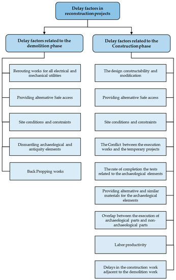 The results indicate that there are five factors for delays related to the demolition phase: rerouting work, providing alternative safe access, site conditions and constraints, dismantling archaeological elements, and back-propping works. Furthermore, there are nine delay factors related to the construction phase: the design constructability and modification, providing alternative safe access, site conditions and constraints, conflict between the execution of some parts of the project and the alternative temporary projects, speed of completion of the tests related to the archaeological elements dismantled during the demolition, providing alternative and similar materials for the archaeological elements, the overlap between the execution of archaeological parts and nonarchaeological parts, labor productivity, and delays in the construction work adjacent to the demolition work.