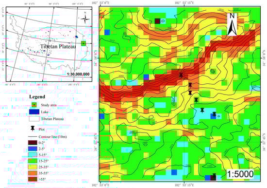 The distribution and functional characteristics of vegetation are determined by zonal climatic conditions at regional and even global scales [1,2]. The topography not only redistributes water, heat and soil nutrients [3,4], but also affects the patterns and characteristics of vegetation at the landscape scales [5,6]. Therefore, topographic factors play an important part in effecting the functional characteristics and diversity of vegetation. Slope as one of the main topographical factors, not only has a great impact on the quantity and function of plant communities, but also a key abiotic factor in plant diversity and soil nutrient change. The effects of slope on plant communities are mainly reflected in the growth conditions and soil erosion of plant communities [7], common plants [8], species numbers [9], plant community characteristics, community diversity [10], and vegetation distribution patterns [11], and so on. Using slope to study vegetation characteristics and diversity distribution has become a prerequisite for revealing the relationship between topography and vegetation.