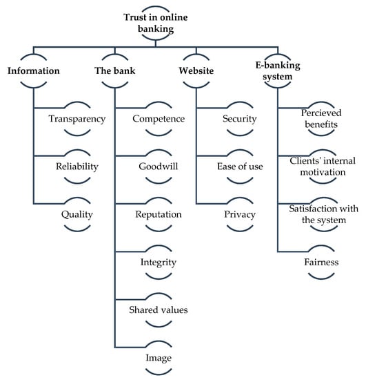 For a more natural understanding, the selected criteria affecting trust in internet banking were divided into four groups (factors) and their subgroups (subfactors) (see Figure 1).