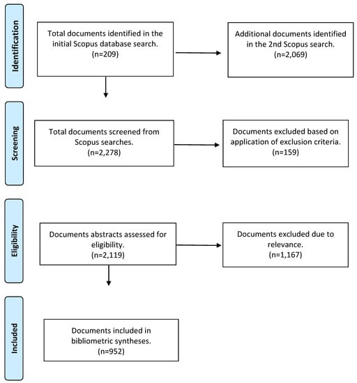 As a subset of systematic reviews of research, science mapping reviews are explicit about the procedures of constructing the review database. This requires, for example, identification of the ‘boundaries’ that define the scope of the review as well as elaboration of the procedures used for identifying sources. This review employed the Scopus index which is widely used to generate databases for systematic reviews of research [34,71]. While the Web of Science (WoS) has had higher visibility than Scopus, scholars have recently demonstrated that Scopus’s superior coverage makes it a better choice for research reviews in management fields [71,72].