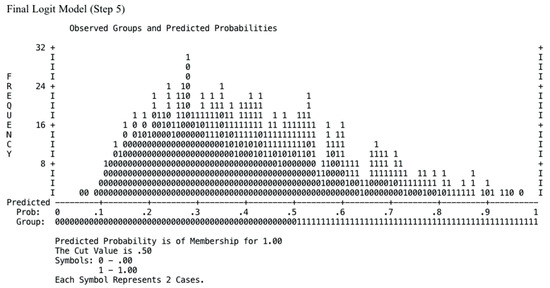 Observed groups (Logit) and probabilistic predictions, corresponding to 1’s = Positive cases and 0’s = Negative cases.