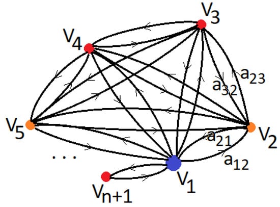 We created an adjacency matrix W(m+1)×(m+1), a quadratic matrix with a dimension of m + 1, with 0 on the main diagonal. W(i,j) is the weight on the vertex (vi,vj), and vi and vj are nodes of the graph.