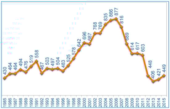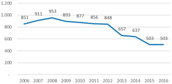 47] starts with the analysis of the housing prices’ trend in the municipality of Castel Volturno, provided by the Observatory of the Property Market (OMI), of the Italian Revenue Agency (We would like to thank the Italian Revenue Agency and, in particular, the Management of the Central Observatory Property Market Appraisals Services for providing the data), which registers the minimum and maximum prices of residential, commercial and productive properties (if present) per unit (Euro/m
