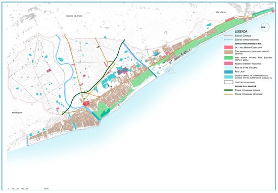 Figure 3) is very fragmented due to the presence of different locations such as the Historical Centre, Scatozza, Baia Verde, Villaggio del Sole, Mezzagni, Borgo Domitio, Villaggio Coppola, Ischitella, Dx Volturno, Mazzafarro, Pescopagano, Bagnara and Seponi.