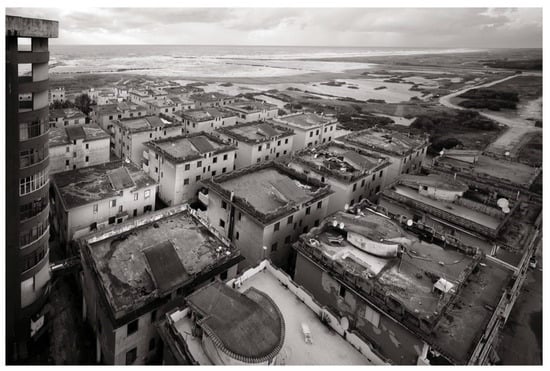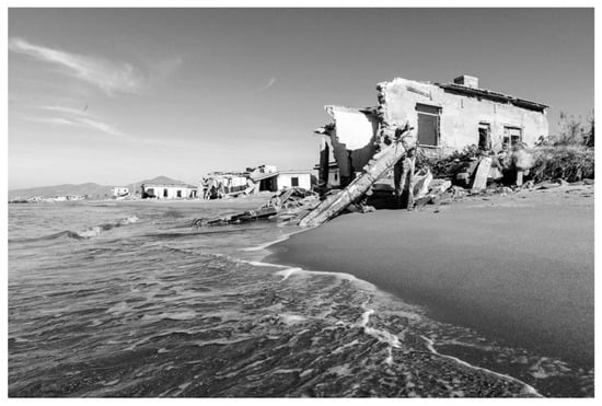 This figure is more than three times the average provincial incidence of the immigrant population in the same period (Source: ISTAT, Municipalities—Italians), which is between 5% and 6% of the total population. It is also worth noting how the evolution of the officially registered population cannot take into account the illegal immigrant population, which also resides along the Domitian coast, and is employed mainly in the primary sector, even seasonally. Therefore, it is reasonable to assume that the overall incidence of the immigrant population on the total population is even higher and occupies the proportion of the most poor-quality building stock, in terms both of building quality and urban environments.