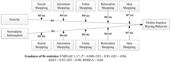 Another theoretical viewpoint that contributes to our understanding of the inspiration procedures in SC is the situational factor. We discuss two situational factors in SC, scarcity (e.g., limited time or quantity) and serendipity (e.g., surprising discoveries). When consumers find services or products on a website abruptly, serendipitous information from discovering information can be elicited to their emotional affection []. This SC setting allows consumers to discover useful information that fits their choices []. When product information found in a planned search is different from the information discovered during navigation, it can elicit behavior of impulsive buying []. The second situational factor is scarcity message, which alerts consumers that there is a limited time and quantity of a product [], causing impulsive behavior. For example, coupons are valid online for a designated length of time [], so they incite impulsive behavior.